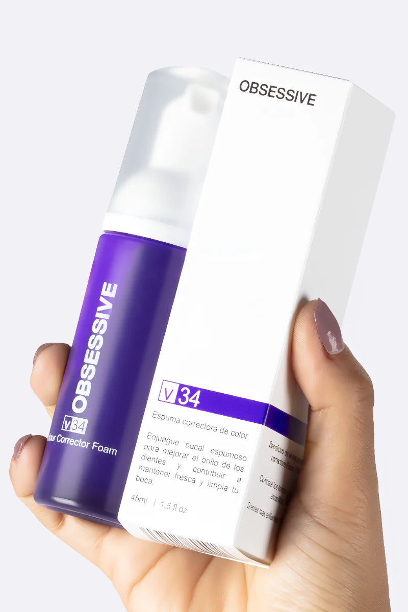 La corrección de color empieza en la rueda cromática, donde el púrpura y el amarillo se contrarrestan como complementarios. Al aplicar púrpura en los dientes con OBSESSIVE, neutralizamos los matices amarillos, revelando un blanco más radiante. OBSESSIVE no solo corrige el color, sino que también elimina bacterias y combate el mal aliento. ¡Una solución completa para una sonrisa perfecta!